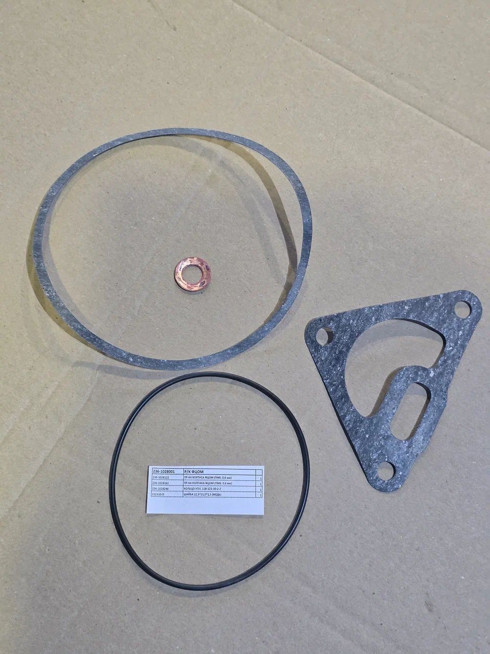 Состав: 236-1028122 прокладка корпуса фильтра ФЦОМ (0,6 мм) - 1 шт. 236-1028162 прокладка колпака фильтра (0,6 мм) - 1 шт. 236-1028246 кольцо уплотнительное размеры 118-123-30-2-2 - 1 шт. 312310-П шайба (медь) размеры 12,5*21,0*1,5 - 1 шт.